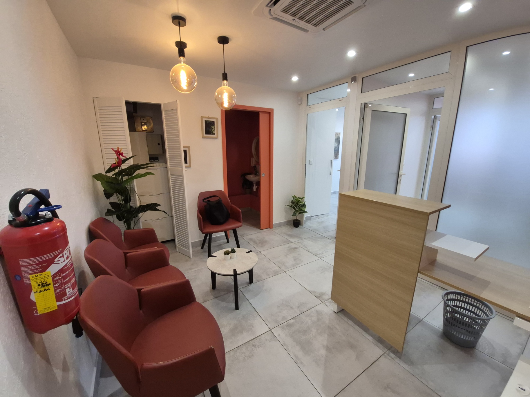 Une salle d’attente avec bureau d’accueil