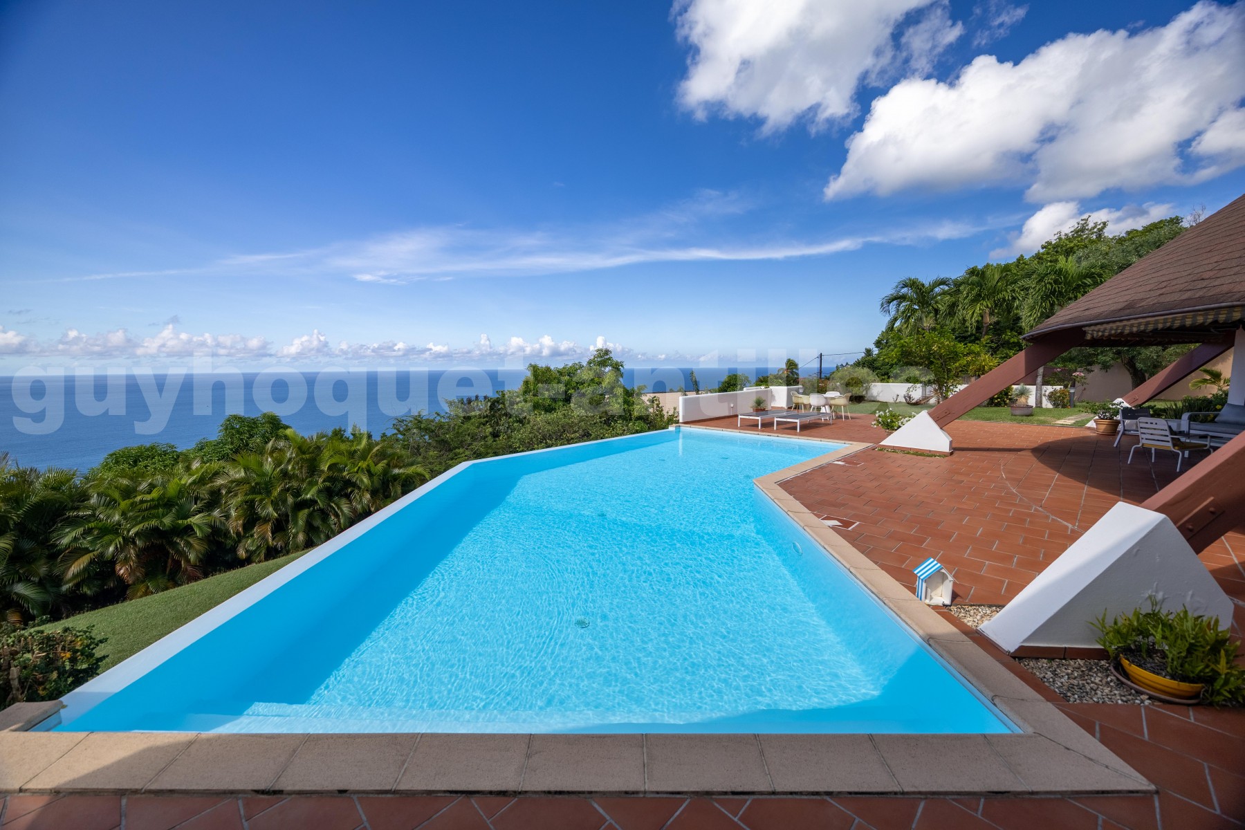 Piscine à débordement et vaste terrasse orientée vers les couchers de soleil