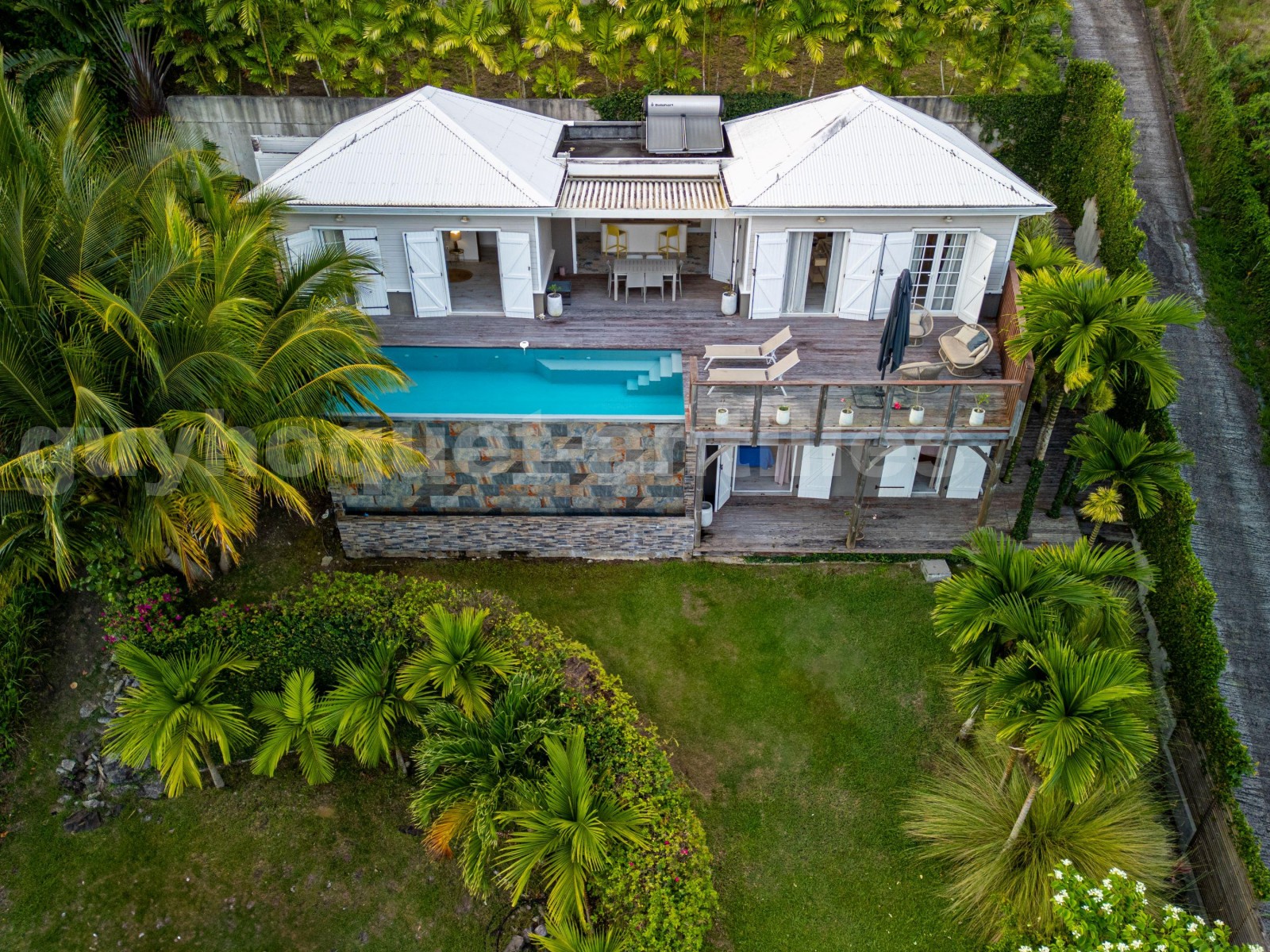Perchée sur les hauteurs privilégiées du quartier Chalopin, au Diamant, la Villa Alma incarne l’alliance parfaite entre modernité et art de vivre tropical. Achevée en 2019, cette propriété d’exception se déploie au cœur d’un panorama unique : la baie de la Cherry, le Rocher du Diamant en majesté, et, par temps clair, l’horizon qui s’étend jusqu’à l’île de Sainte-Lucie.