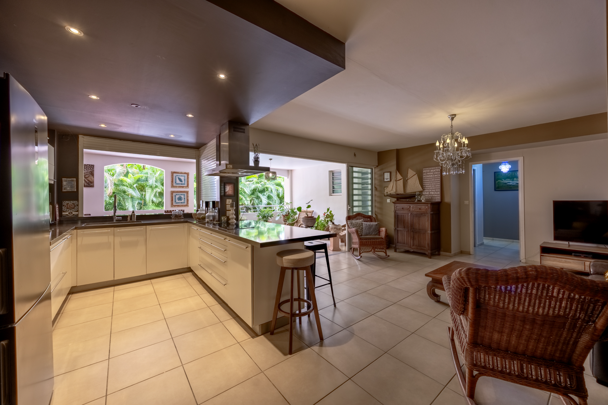 Situé en étage avec ascenseur au sein d’une petite copropriété sécurisée, l’appartement se compose d’une cuisine ouverte et contemporaine, d’un séjour lumineux prolongé par une terrasse sans vis-à-vis, d’une suite parentale climatisée avec dressing, salle d’eau et balcon, de deux chambres climatisées, d’une seconde salle d’eau avec WC, d’un WC indépendant et d’une buanderie.