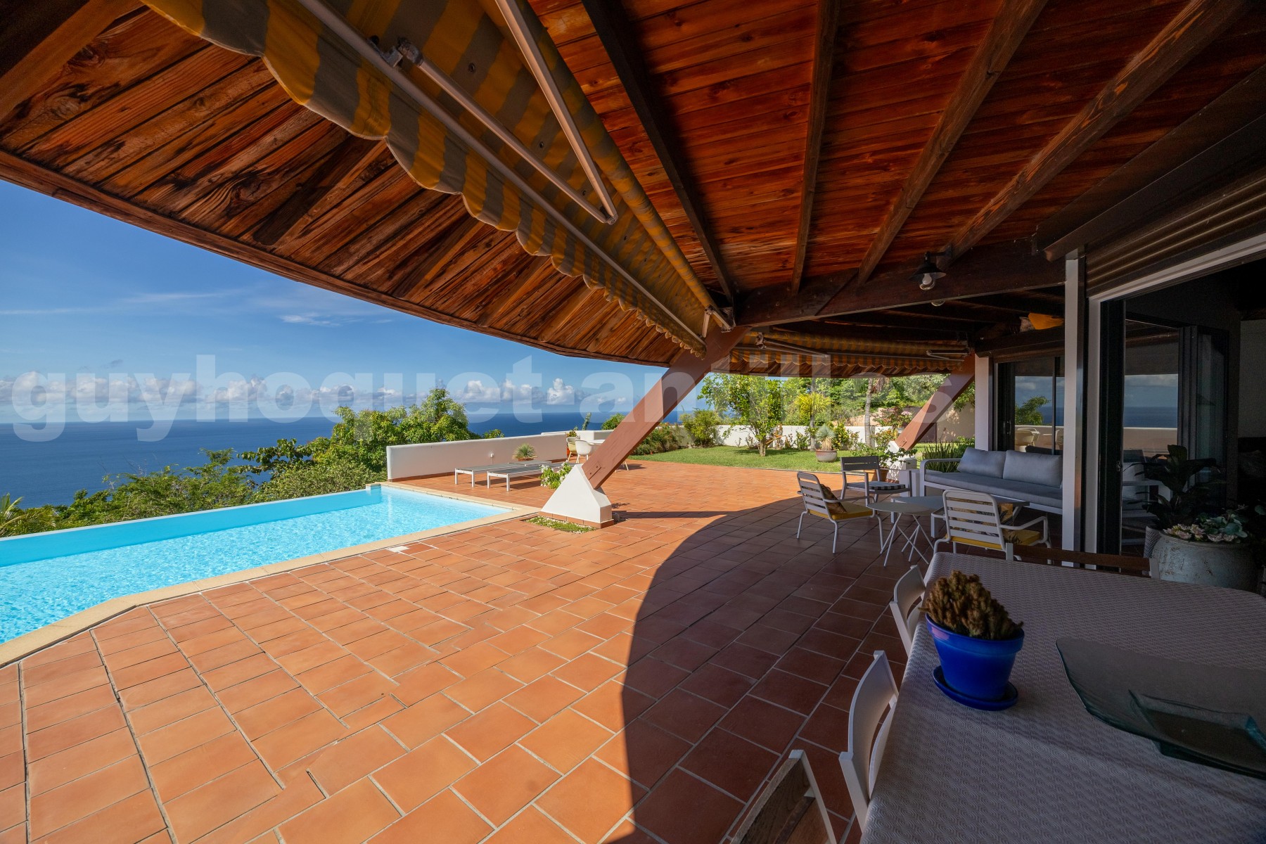 Piscine à débordement et vaste terrasse orientée vers les couchers de soleil