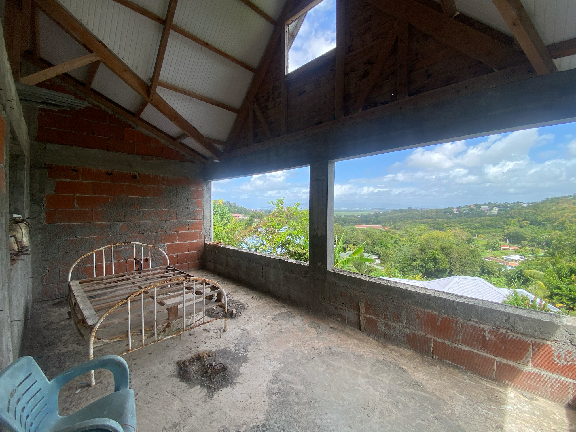 La maison est actuellement en clos couvert (gros œuvre terminé) : une véritable reprise de travaux est à prévoir pour finaliser les aménagements intérieurs (menuiseries, finitions, etc.).