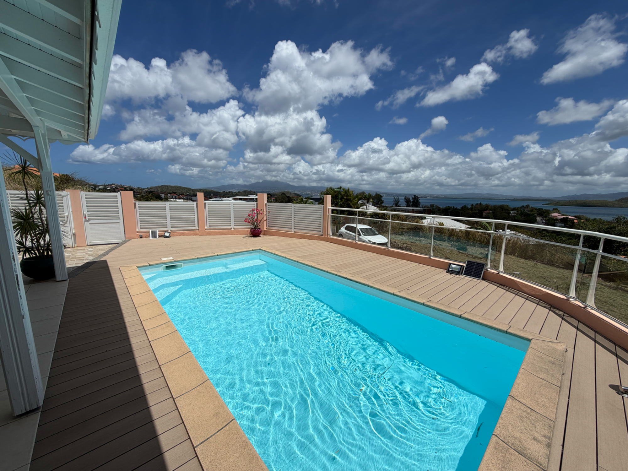 Située dans un quartier prisé des Trois-Îlets, cette villa avec vue mer offre un cadre de vie agréable et fonctionnel, idéal pour profiter pleinement de l’extérieur. Le séjour, ouvert sur la terrasse, prolonge naturellement l’espace de vie vers la piscine, créant une atmosphère conviviale et lumineuse. La cuisine, ouverte et équipée, donne directement sur la terrasse et s’inscrit parfaitement dans cet esprit de partage et de détente.